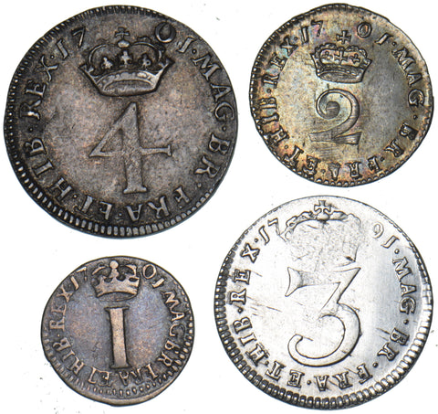 1701 Maundy Set - William III British Silver Coins - Very Nice