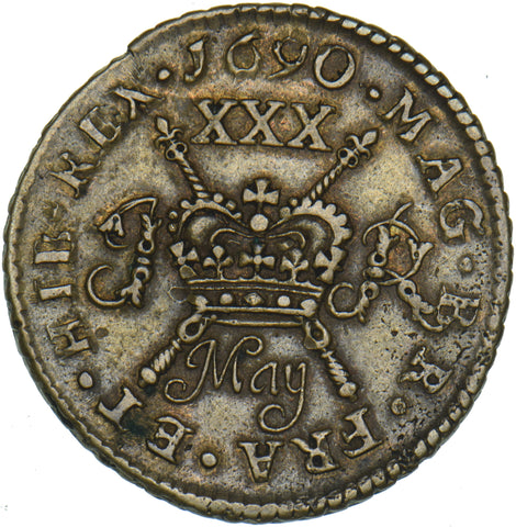1690 Ireland Gunmoney Limerick Halfcrown (May) - Copper/Brass Coin - Very Nice