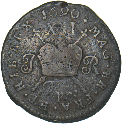 1690 Ireland Gunmoney Shilling (Apr:) - James II Copper/Brass Coin