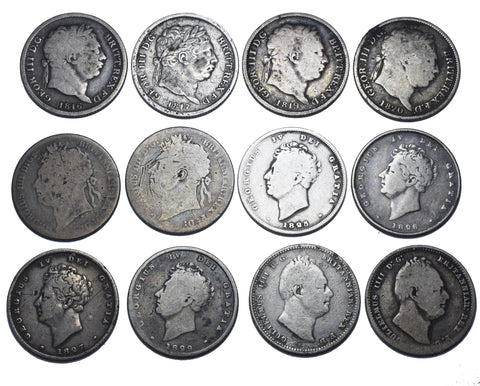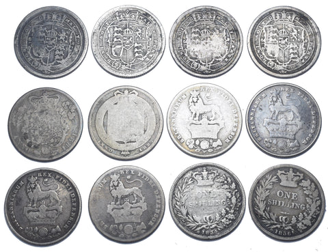 1816 - 1836 Shillings Lot (12 Coins) - British Silver Coins - All Different