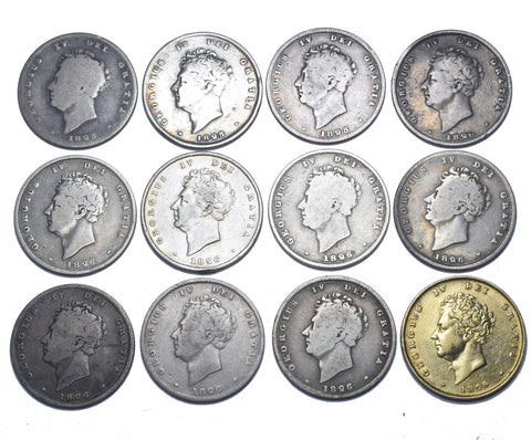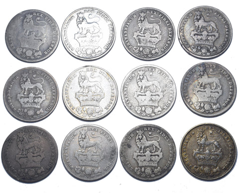 1825 - 1826 Shillings Lot (12 Coins) - George IV British Silver Coins