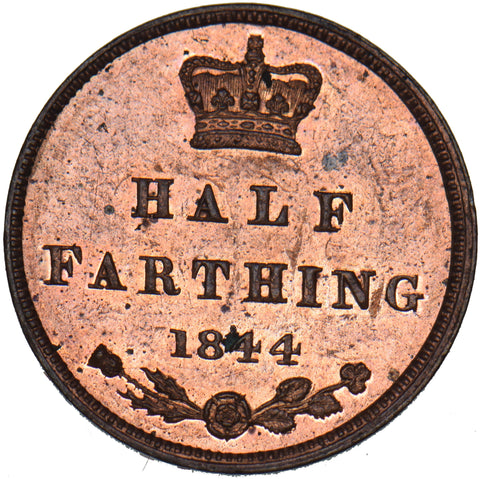1844 Half Farthing - Victoria British Copper Coin - Superb