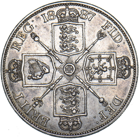 1887 Double Florin (Roman 1) - Victoria British Silver Coin - Very Nice