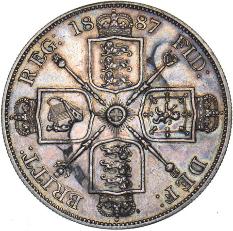 1887 Double Florin (Arabic 1) - Victoria British Silver Coin - Nice