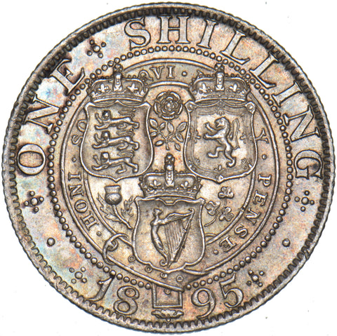 1895 Shilling (Large Rose) - Victoria British Silver Coin - Very Nice
