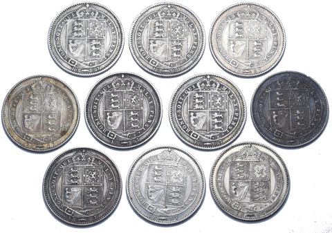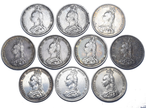 1887 Shillings Lot (10 Coins) - Victoria British Silver Coins