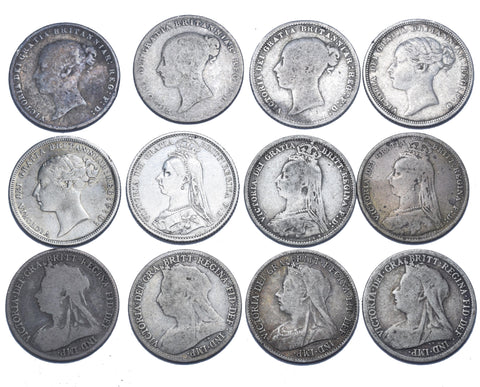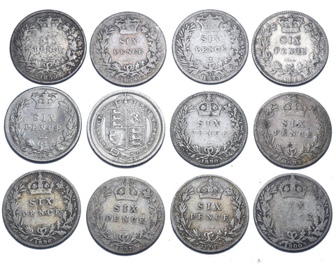 1859 - 1900 Sixpences Lot (12 Coins) - Victoria British Silver Coins