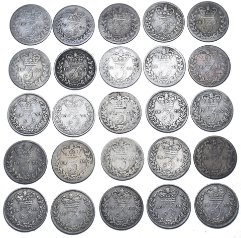 1860 - 1887 Threepences Lot (25 Coins) - Victoria British Silver Coins