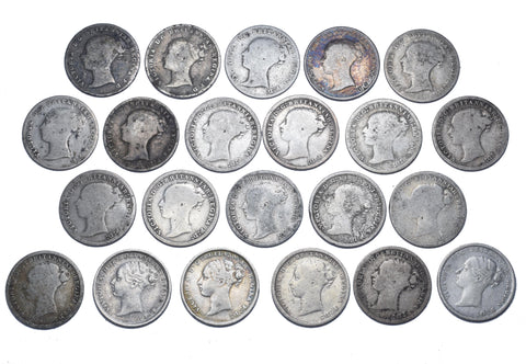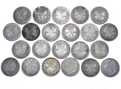 1860 - 1887 Threepences Lot (22 Coins) - Victoria British Silver Coins