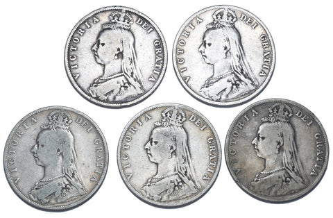 1887 - 1892 Halfcrowns Lot (5 Coins) - Victoria British Silver Coins