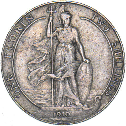 1910 Florin - Edward VII British Silver Coin - Nice