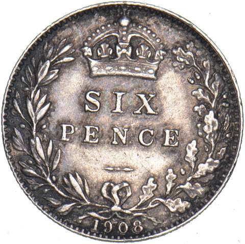 1908 Sixpence - Edward VII British Silver Coin - Nice