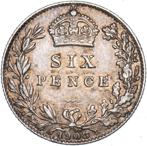 1908 Sixpence - Edward VII British Silver Coin - Nice