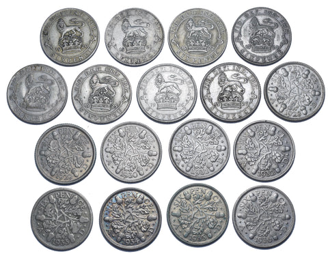Full date run of .500 silver George V sixpences between 1920 and 1936.