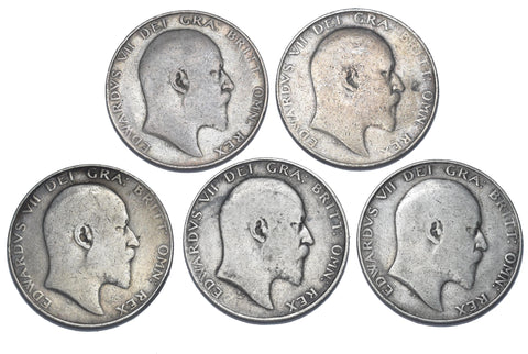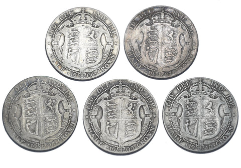 1906 - 1910 Halfcrowns Lot (5 Coins) - Edward VII British Silver Coins