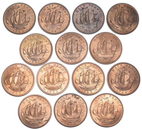 1953 - 1967 High Grade Halfpennies Lot (14 Coins) - British Bronze Coins