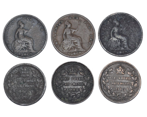 1827 - 1913 Third Farthings Lot (6 Coins) - British Copper Bronze -All Different