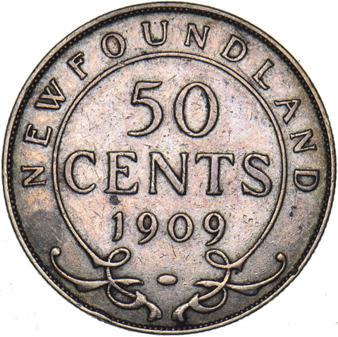 1909 Canada Newfoundland 50 Cents - Edward VII Silver Coin - Nice