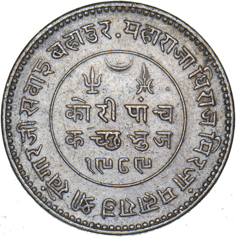 1932 India Kutch 5 Kori - Silver Coin - Nice