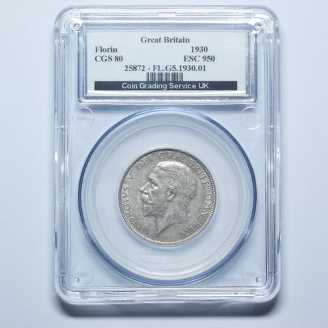 1930 Florin (CGS 80) - George V British Silver Coin - Superb