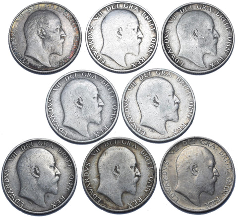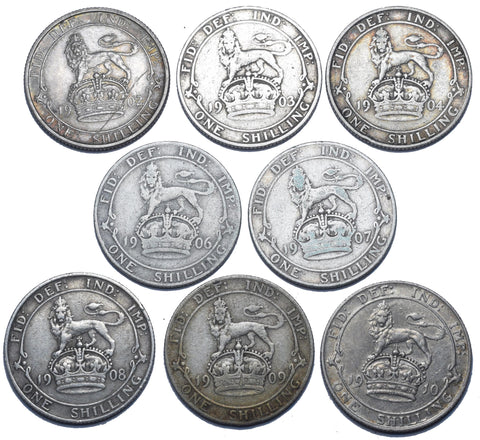1902 - 1910 Shillings Lot (8 Coins) - Edward VII British Silver Coins
