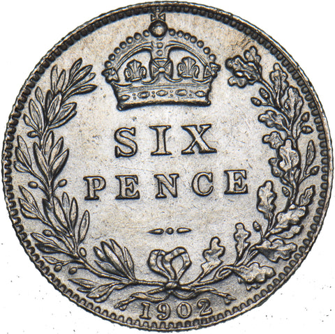 1902 Sixpence - Edward VII British Silver Coin - Superb