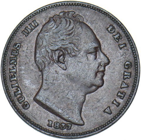 1837 Farthing - William IV British Copper Coin - Nice