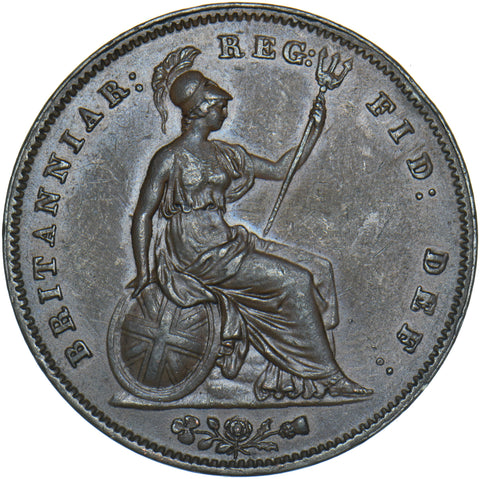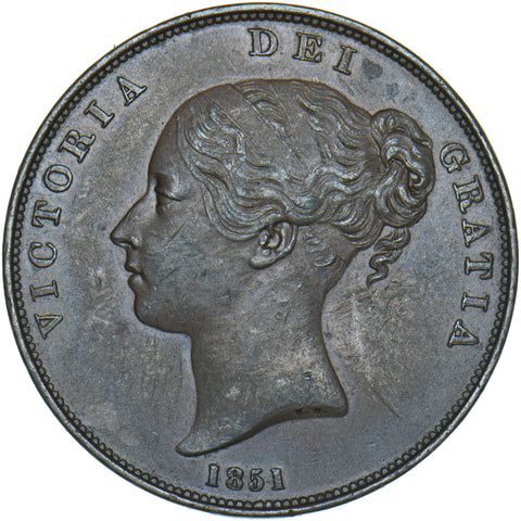 1851 Penny (Far Colon) - Victoria British Copper Coin - Very Nice