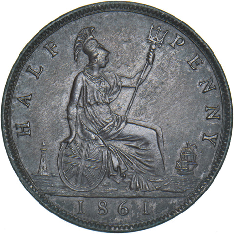 1861 Halfpenny - Victoria British Bronze Coin - Very Nice