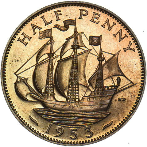 1953 Proof Halfpenny - Elizabeth II British Bronze Coin - Superb