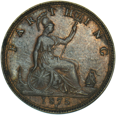 1875 Farthing - Victoria British Bronze Coin - Very Nice