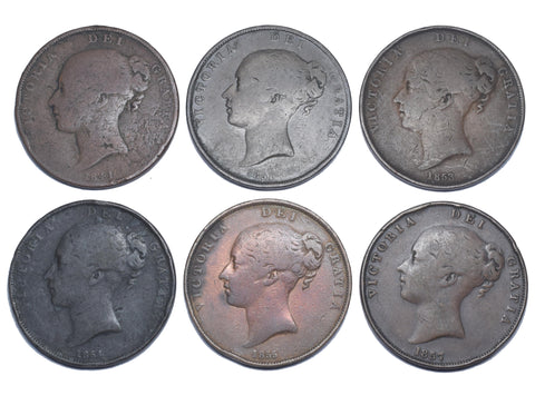 1841 - 1857 Pennies Lot (6 Coins) - Victoria British Copper Coins -All Different