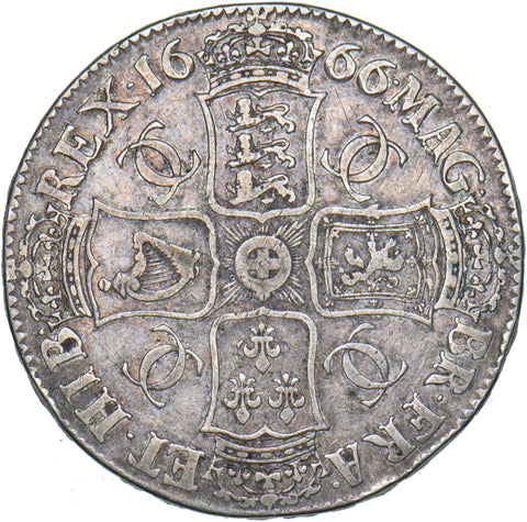 1666 Crown (Elephant Below Bust) - Charles II British Silver Coin - Nice