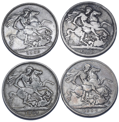 1889 - 1892 Crowns Lot (4 Coins) - Victoria British Silver Coins