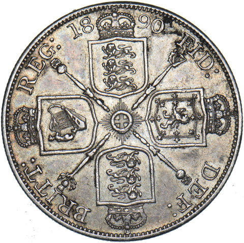 1890 Double Florin - Victoria British Silver Coin - Very Nice