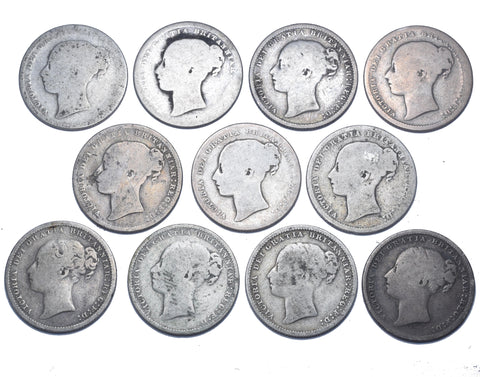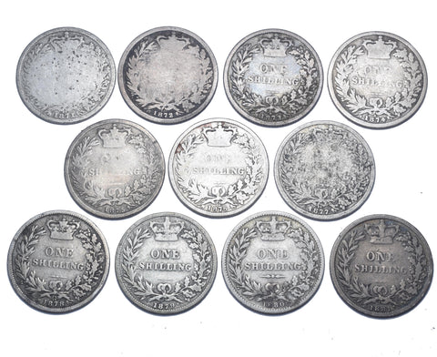 1871 - 1881 Shillings Lot (11 Coins) - Victoria British Silver Coins - Date Run