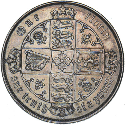 1881 Gothic Florin (xxri Flaw) - Victoria British Silver Coin - Very Nice