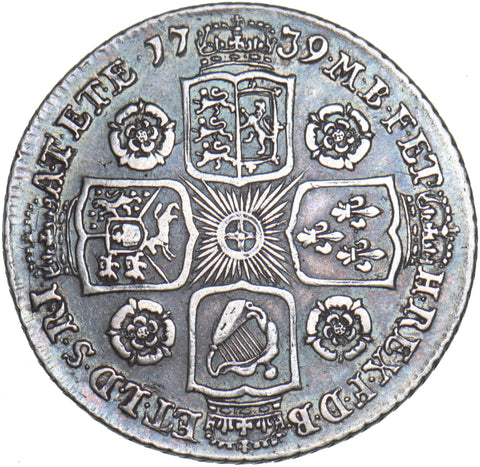 1739 Shilling - George II British Silver Coin - Nice