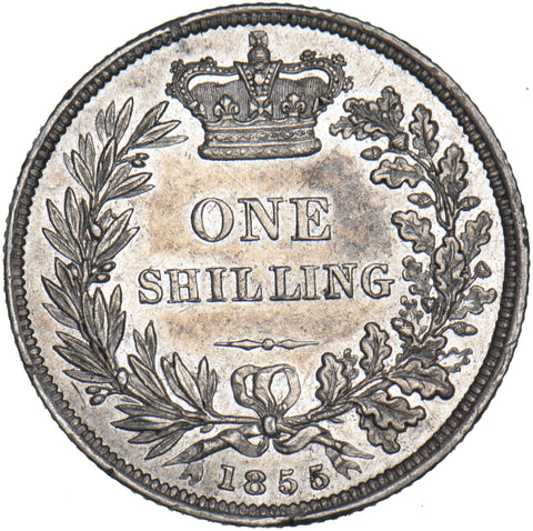 1855 Shilling - Victoria British Silver Coin - Very Nice