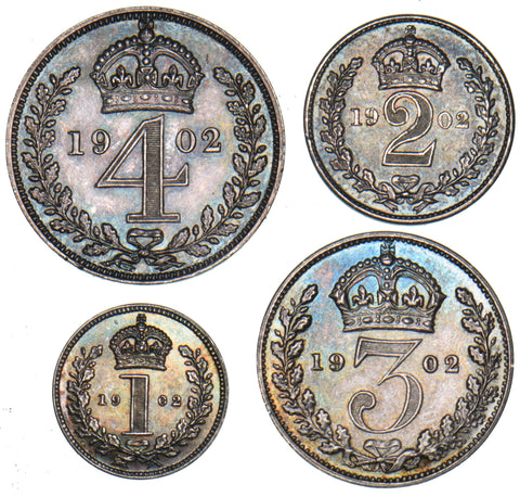 1902 Maundy Set (With Dated Case) - Edward VII British Silver Coins - Superb