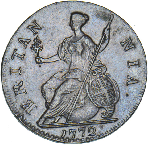 1772 Halfpenny - George III British Copper Coin - Very Nice