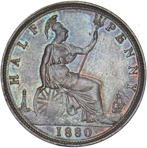 1880 Halfpenny - Victoria British Bronze Coin - Very Nice