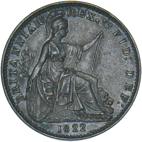 1822 Farthing - George IV British Copper Coin - Very Nice
