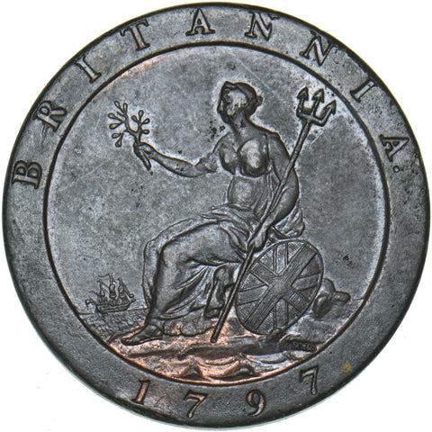 1797 Penny - George III British Copper Coin - Very Nice