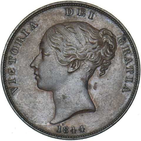 1844 Penny - Victoria British Copper Coin - Very Nice