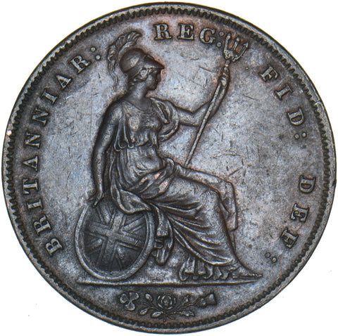 1858 Penny (8 Over 7) - Victoria British Copper Coin - Very Nice