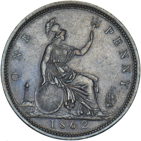 1862 Penny - Victoria British Bronze Coin - Very Nice