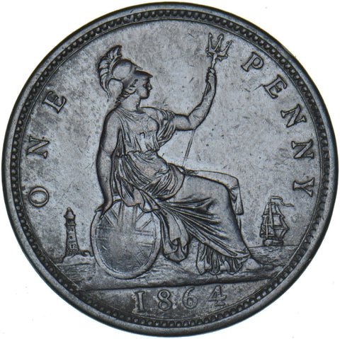 1864 Penny (Upper Serif) - Victoria British Bronze Coin - Nice
