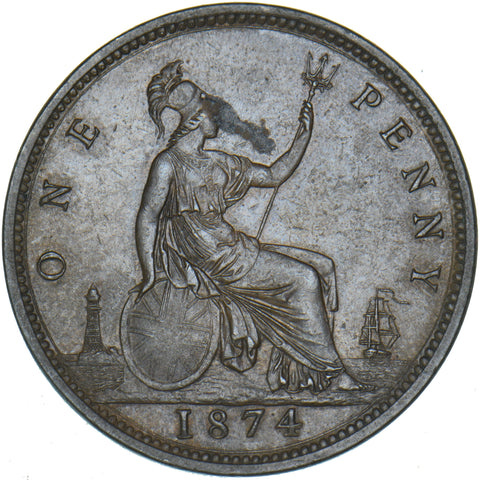 1874 Penny (F70 7+G) - Victoria British Bronze Coin - Very Nice