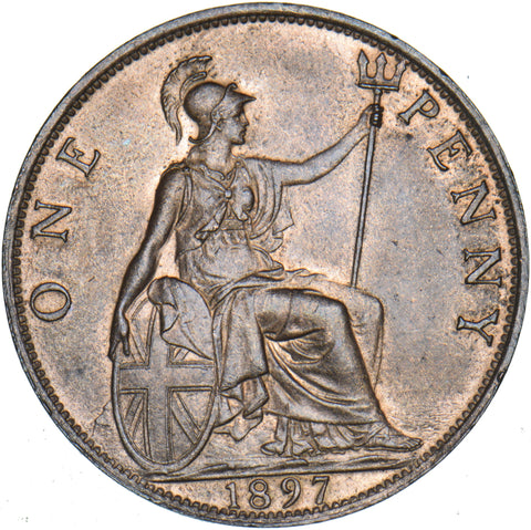 1897 Penny - Victoria British Bronze Coin - Very Nice